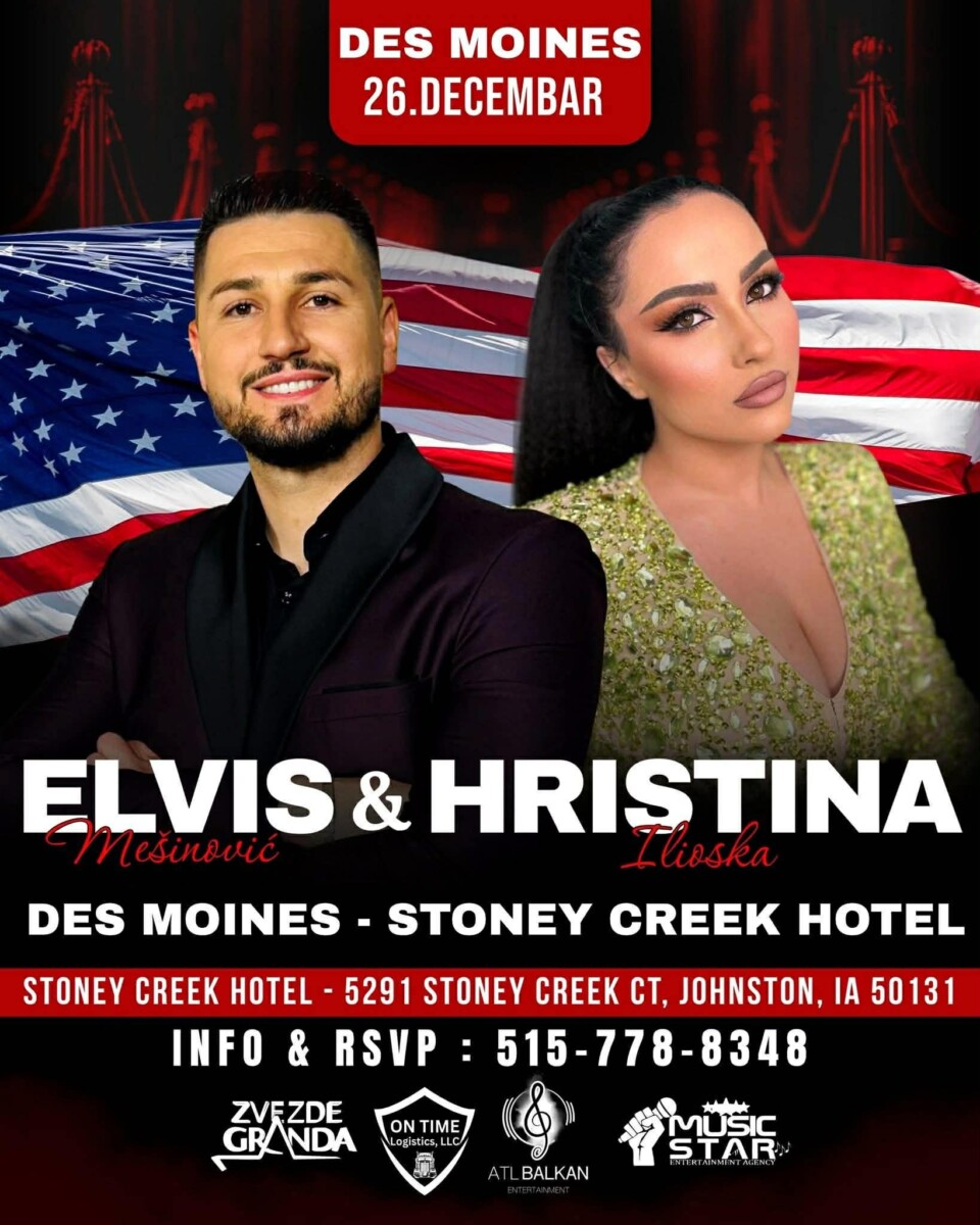 Get ready for an unforgettable musical evening, as Hristina Ilioska and Elvis Meshinovich are coming to Des Moines on December 26!