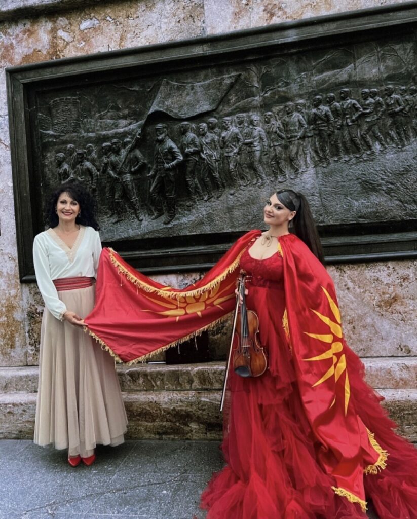 •What makes me recognizable above all is my red dress and our beautiful national flag. When I play, I do not play only for myself—I play as a Macedonian, with pride and love, for the homeland that shaped me, taught me how to feel, and gave me a voice through music. The violin and Macedonia are one in my expression. When I play, every note speaks of who I am, where I come from, and how proud I am to be Macedonian.