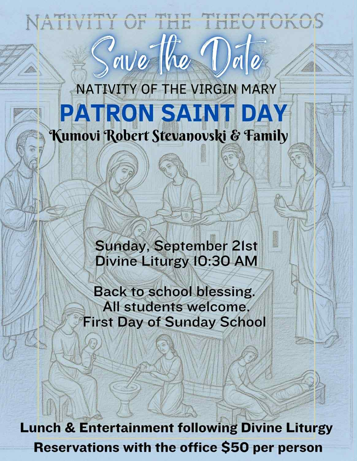 Со голема радост ве известуваме дека во недела, 21 септември 2025 година, нашата Света Црква ке го прослави сојот патронен празник –