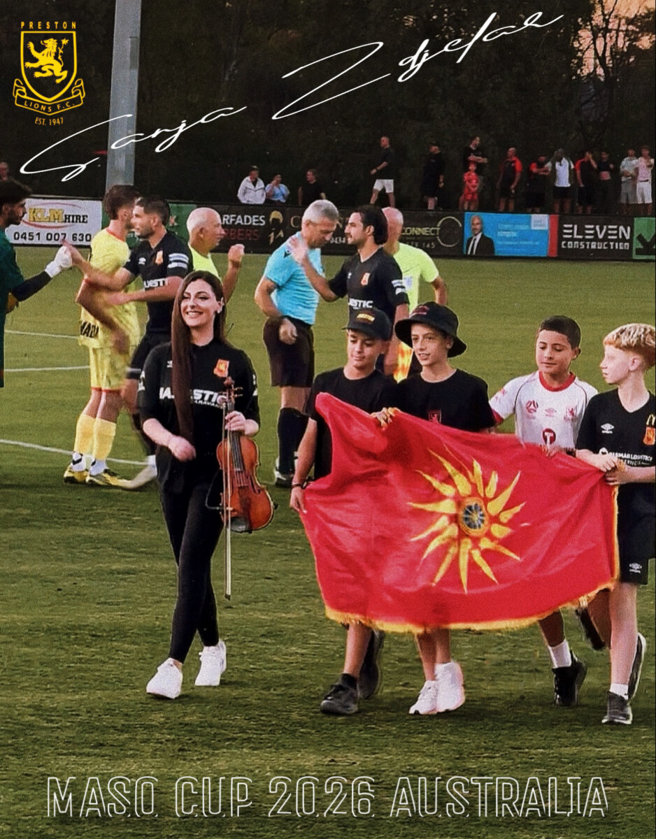 Македонската виолинистка Сања Здјелар настапи на свеченото отворање на MASO CUP 2026 во Австралија, каде што на виолина ја изведе македонската химна пред бројна публика и претставници на македонската дијаспора.